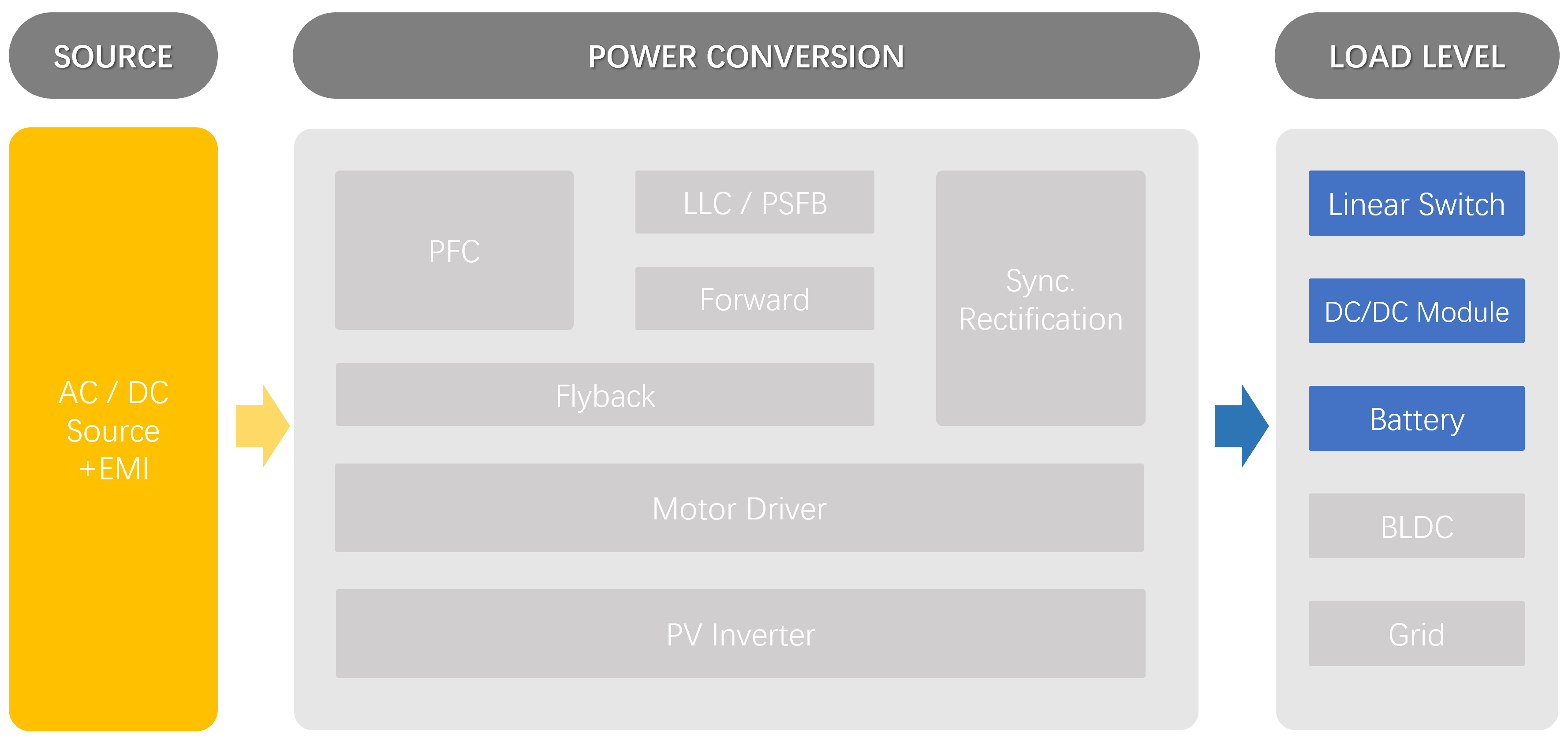 對于功放類電路,我們提供30V~150V的SGTMOS,具有優(yōu)秀的開關(guān)特性和低的反向恢復(fù)時間。我們的SGTMOS具有小體積、輕薄化、高密度、高效率、低噪聲及高可靠性等優(yōu)點,可以廣泛應(yīng)用于通信類DC-DC轉(zhuǎn)換器、工業(yè)DC-DC模塊系統(tǒng)、汽車電子DC-DC模塊系統(tǒng)等。