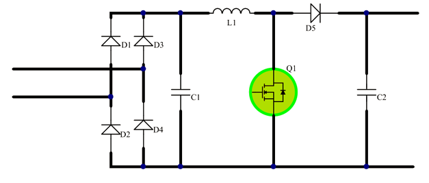 The common working modes of PFC(Power-Factor Correction) topology include CCM(Continuous Current Mode), DCM(Discontinuous Current Mode) and CRM(Critical Conduction Mode). PFC topology has a high requirement for MOSFET, and system stability should be improved as much as possible under the condition of ensuring system efficiency and temperature rise. The control loop speed of PFC topology is relatively slow. In order to smooth the AC rectified ripple between 100Hz and 120Hz, the reaction time of PFC topology must reach 10ms. Without special optimization of the control circuit and IC, PFC topology tends to produce a large shock current during the start-up process, which can reach 5-10 times of the normal operation. Especially in the repeated switching process, the MOSFET has a more severe test. MOSFET in PFC topology are bonded between high voltage and ground. The EAS capability of MOSFET is also an important reference to evaluate their reliability during safety testing. Therefore, when choosing MOSFET for PFC circuits, the switching characteristics (Ciss), EAS capability, surge resistance and electrostatic protection capability of MOSFET should be considered in particular.
